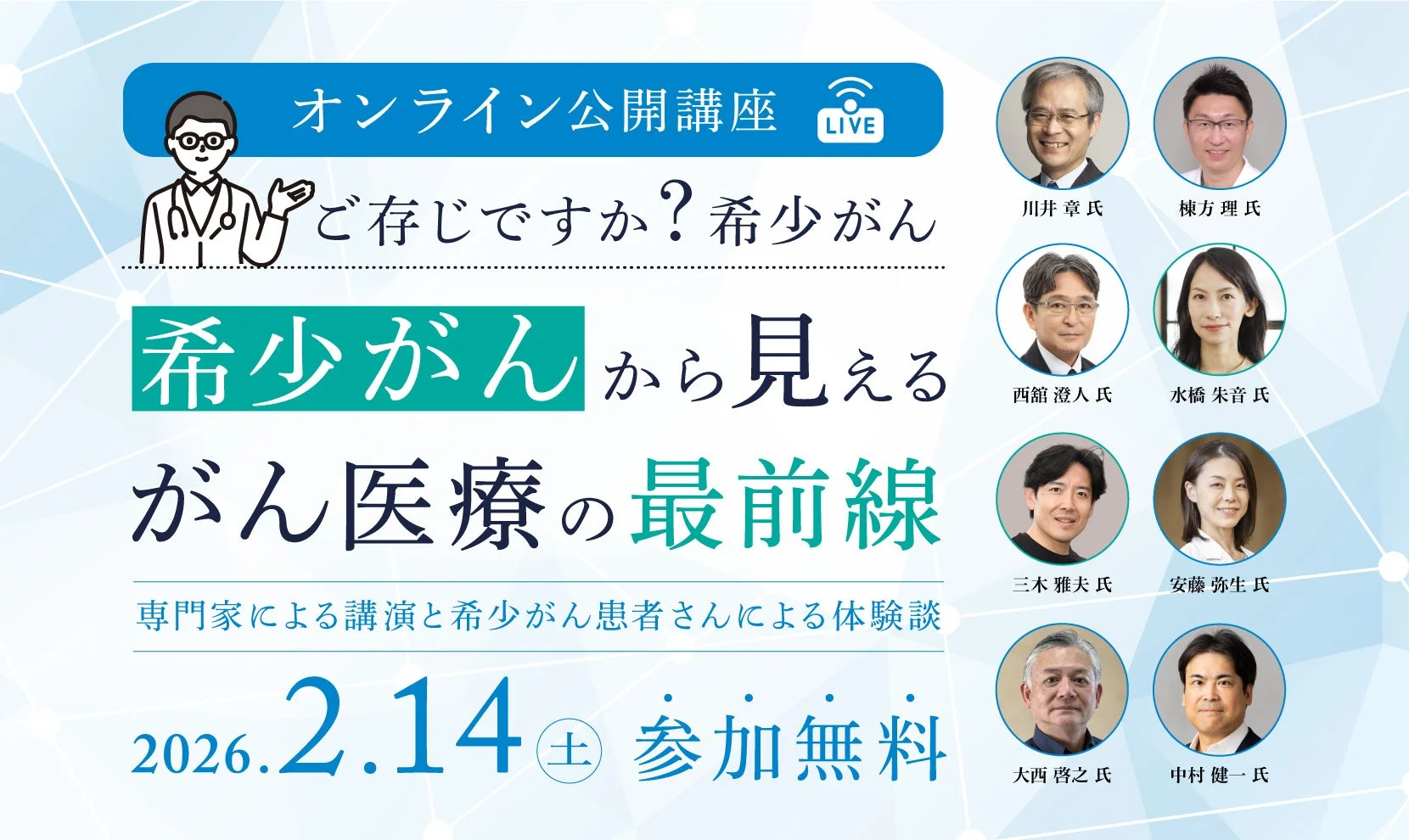 患者数が少なく、情報も限られがちな「希少がん」に直面している方へ。2026年2月14日に開催される無料オン…