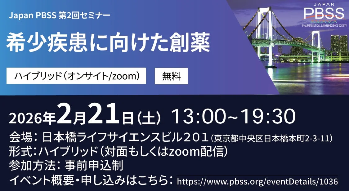 一般社団法人Japan Pharmaceutical & BioScience Societyが主催する、希少疾患の創薬に焦点を当てた第…